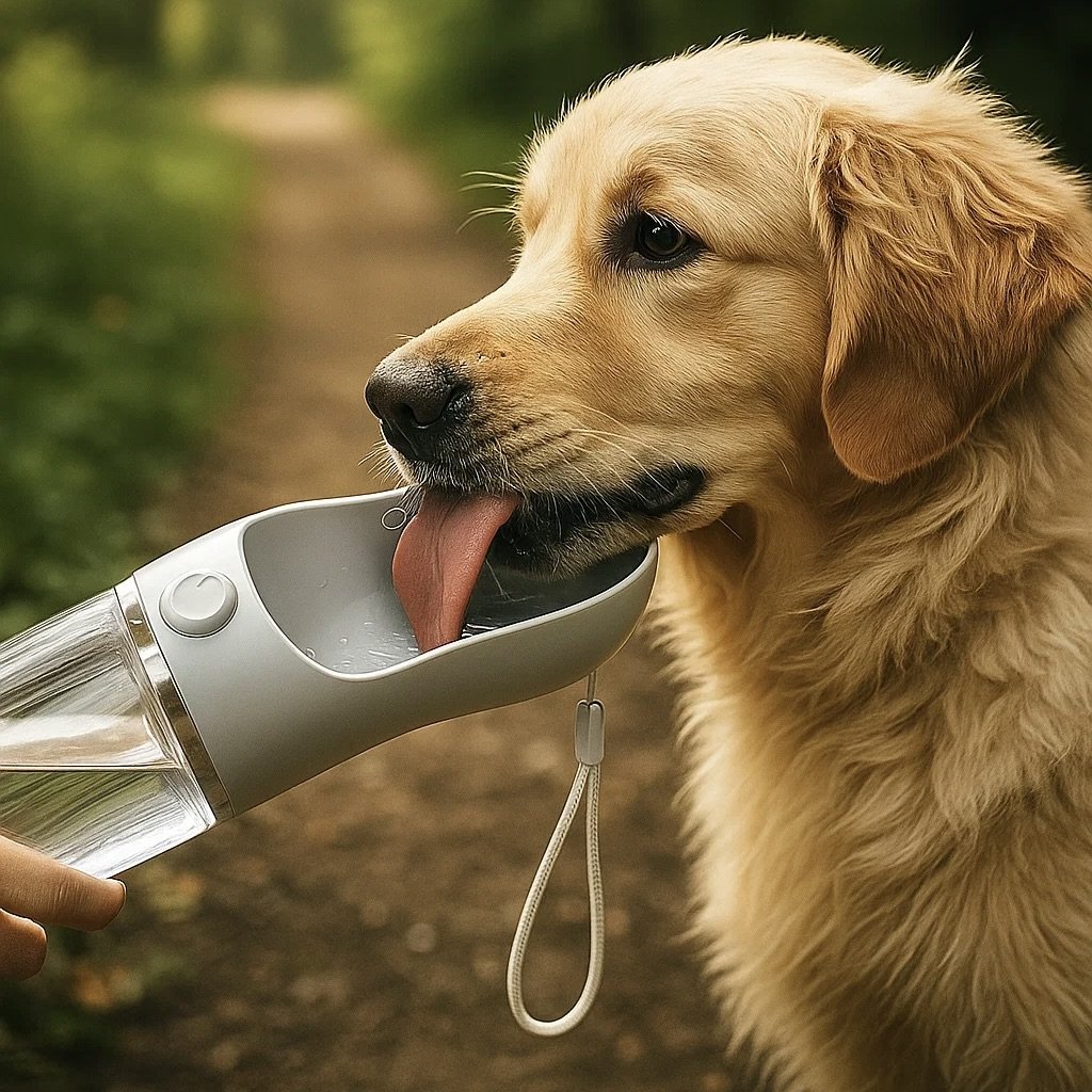 Majte vždy po ruke čerstvú vodu pre svojho štvornohého miláčika. Táto praktická cestovná fľaša pre psov s objemom 500 ml a integrovanou miskou je navrhnutá tak, aby vám spríjemnila spoločné chvíle na prechádzkach, výletoch či pri cestovaní. Vďaka integrovanej miske sa váš psík môže napiť priamo z fľaše – rýchlo, pohodlne a bez zbytočného neporiadku. Stačí stlačiť tlačidlo a voda sa jednoducho uvoľní. Fľaša je ponúkaná výhradne ako doplnkové príslušenstvo k nášmu sklenenému barelu s vodou a je dostupná iba klientom Aqua Angels s odberom vody. Samostatne ju neponúkame.